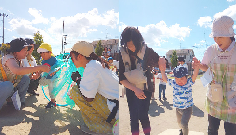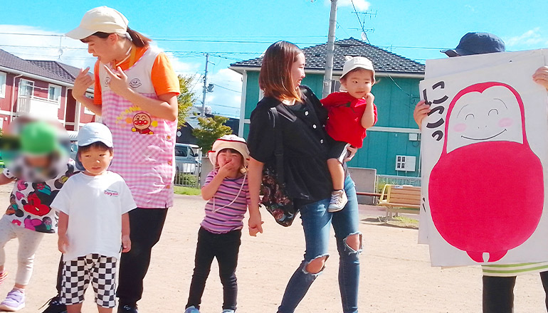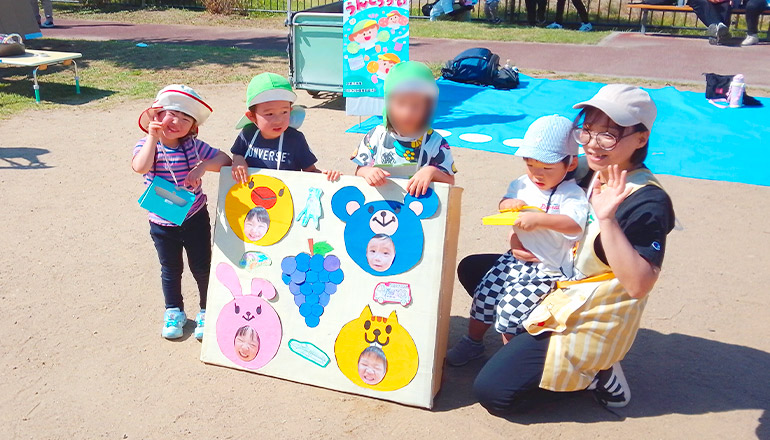 当日はお父様・お母様をはじめ、ご兄弟、おじいちゃんおばあちゃんまでたくさんの方々が来園し、園庭は笑顔と歓声でいっぱいに。