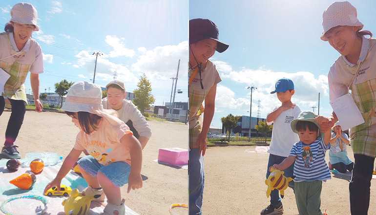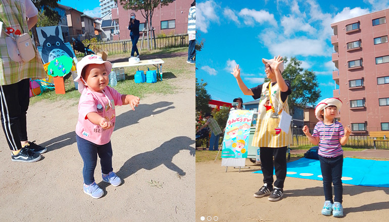 「自分でできること」が増えた1歳児さんたちは、笑顔で最後までやりきりました。