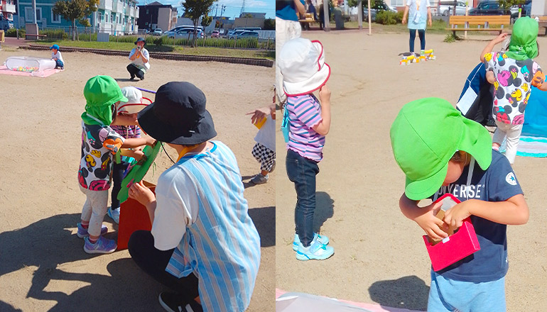 絵本のまねっこをしたり、フルーツ狩りをして“だるまさん”にごちそうをプレゼントしました。