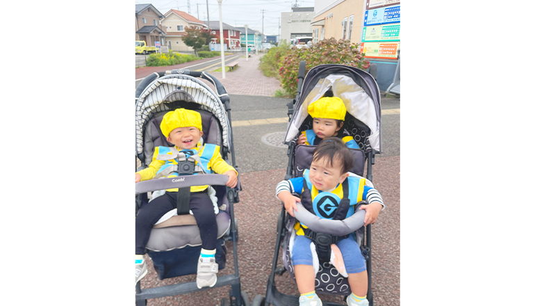 準備を終えた子どもたちは、元気いっぱいに園周辺へ出発しました。
