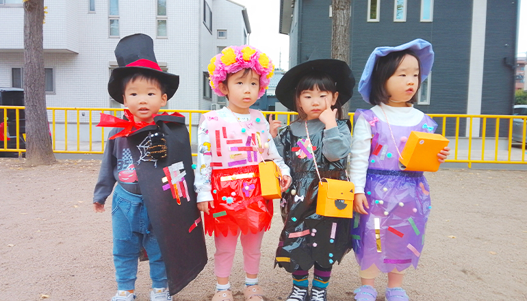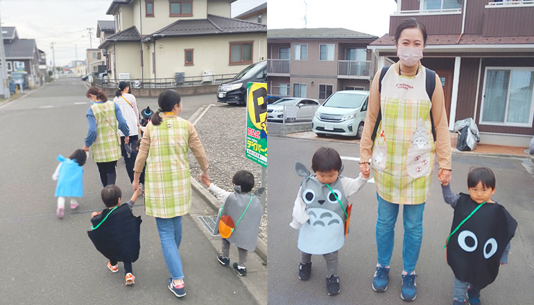 園児たちはそれぞれ“好きなもの”に変身し、地域をお散歩しながらハロウィンを満喫。衣装はすべて先生たちの手作りで、どの姿も思わず笑顔になるかわいさでした。